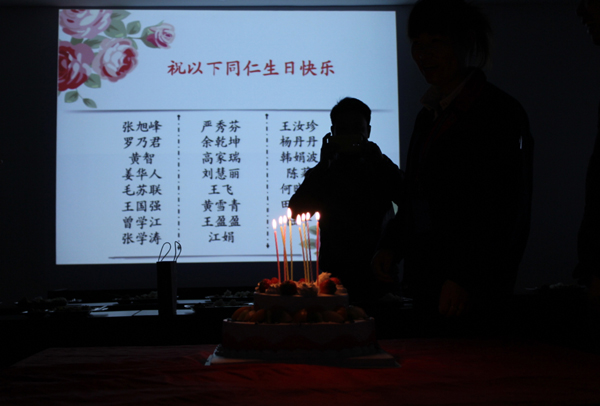 “祝你生日快樂,祝你生日快樂,……”,當(dāng)熟悉的生日歌聲響起的時(shí)候,在眾人熱烈期待的眼神中,壽星代表共同拿起刀叉為大家切分生日蛋糕,頓時(shí),一張張年輕的臉龐在燦爛的燈光下綻開了幸福的笑容……