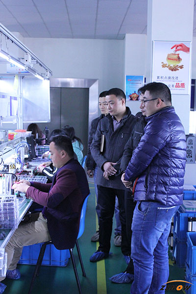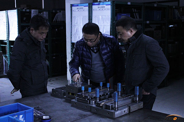 客戶一行參觀了我司的樣品間,沖壓車間、注塑車間、組裝車間、機裝車間,同時也參觀了實驗中心和倉庫。